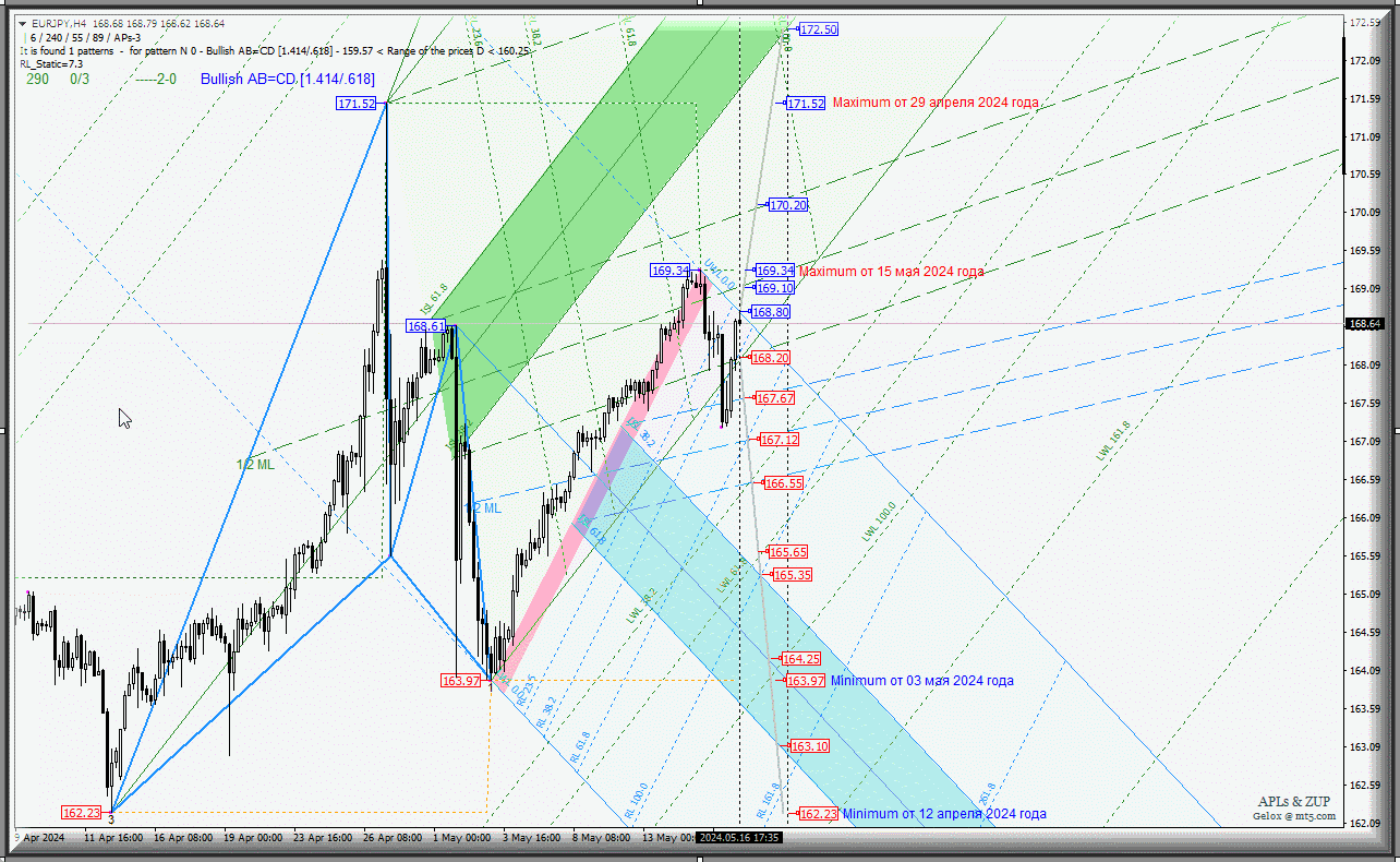 С 17 мая 2024 года развитие движения EUR/JPY-h4 станет зависеть от отработки и направления пробоя диапазона: