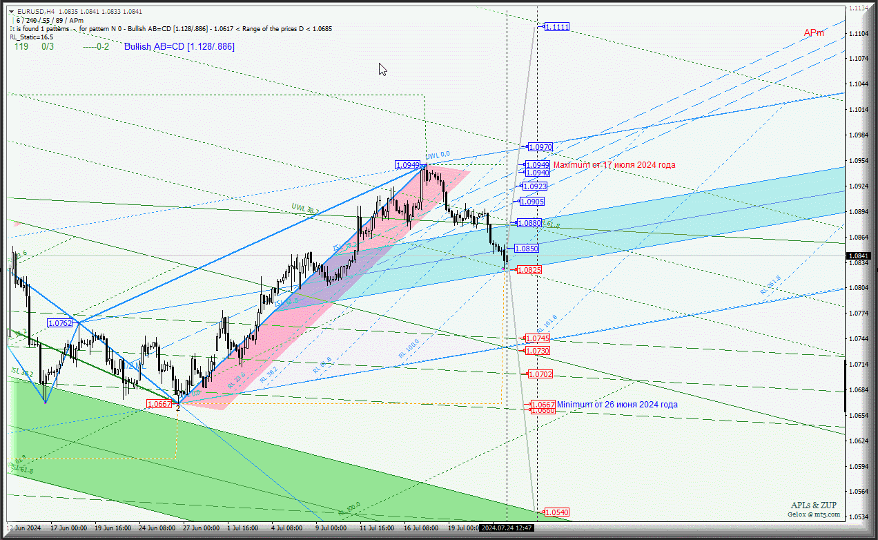 EUR/USD - h4 - обзор вариантов движения - с 25 июля 2024 г.