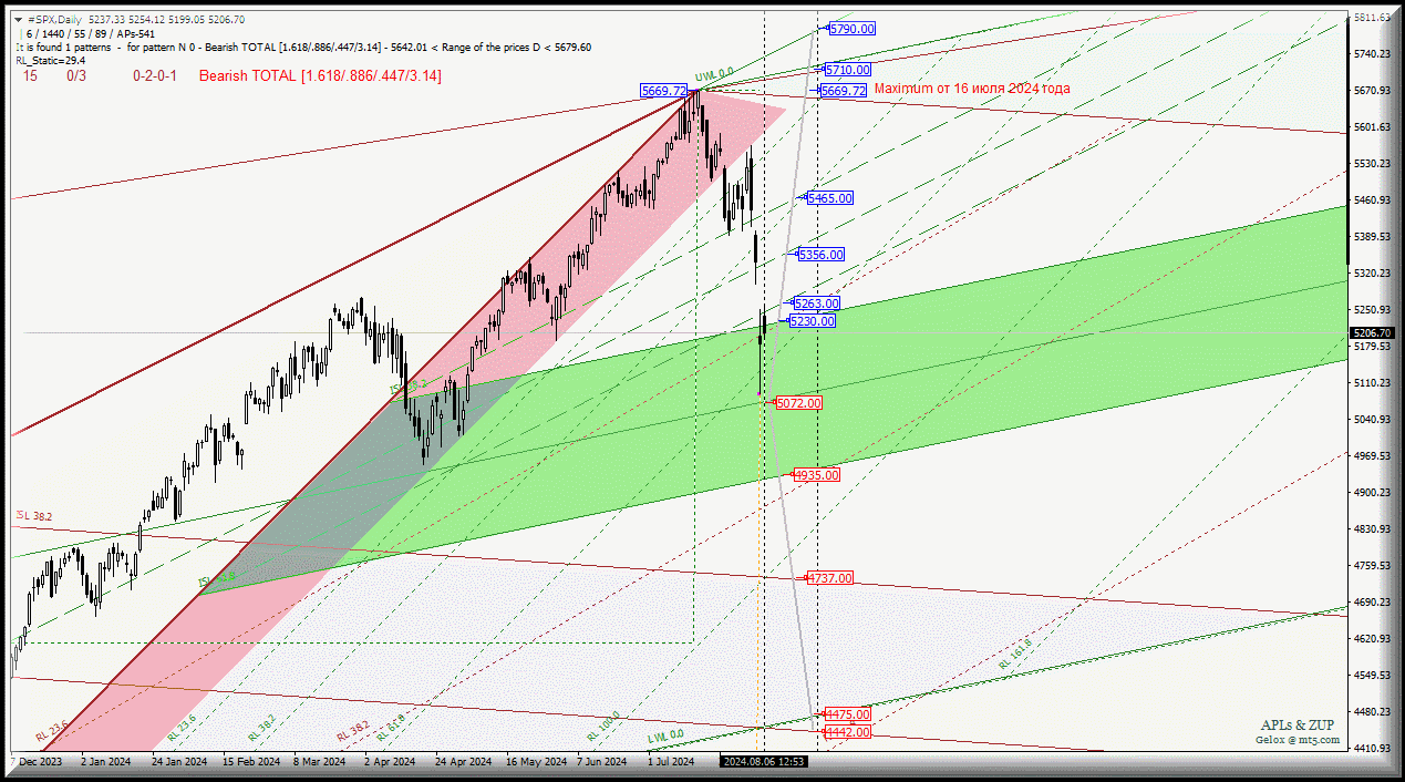 Основные технические уровни для торговли #SPX - Daily - обзор вариантов движения c 07 августа 2024 года.