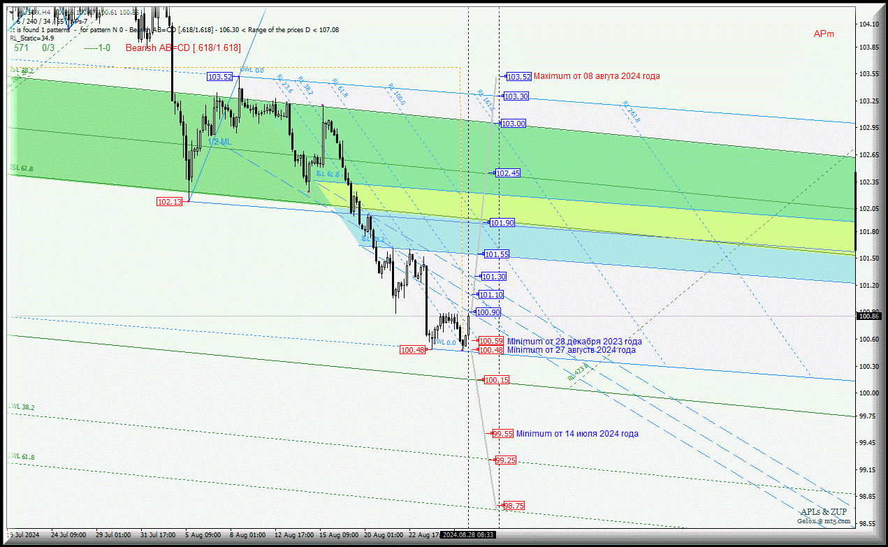 #USDX - h4- обзор вариантов движения - с 28 августа 2024 г.