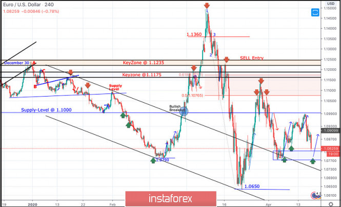 Se han manifestado las primeras señales de rechazo alcista alrededor de la zona de precios de (1.0800-1.0750) que conducen al reciente repunte alcista hasta 1.0990.