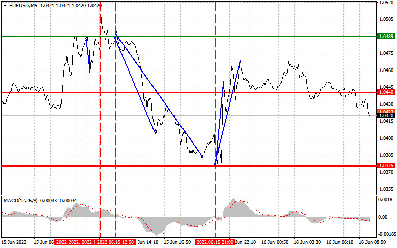 El EUR/USD alcanzó el nivel de 1,0489 y llevó a una señal de compra en el mercado, sin embargo, tener la línea MACD lejos de cero limitó el potencial alcista del par. Algún tiempo después, el par volvió a probar el nivel, pero esta vez la señal era vender. Esto condujo a una disminución de más de 30 pips, ya que la línea MACD estaba en el área de sobrecompra. Exactamente la misma situación se repitió a la mitad del día, con el euro cayendo en más de 80 puntos. Como tal, después de la reunión de la Fed, el par llegó a 1,0375, donde se formó una señal de compra. Eso, a su vez, hizo que el par subiera más de 70 pips.