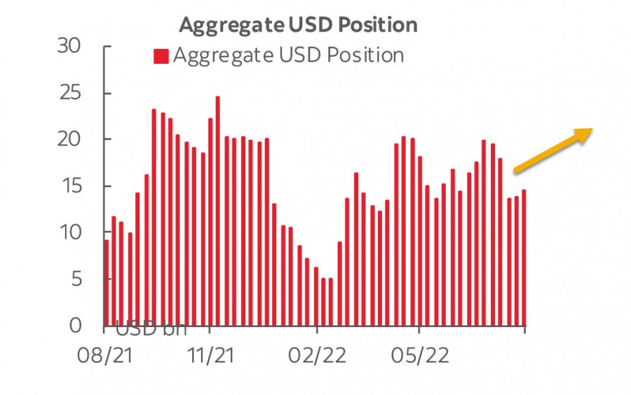 Según los datos de la CFTC, los especuladores elevaron sus apuestas alcistas sobre el dólar estadounidense la semana pasada. El valor de la posición larga neta en dólares aumentó $870 millones a $14.700 millones.