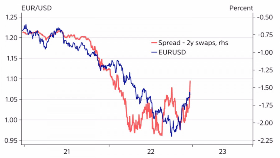En cualquier caso, los inversores deben prestar mucha atención a las estadísticas macroeconómicas y los indicadores del mercado porque los bancos centrales, incluida la Reserva Federal, seguirán controlando el mercado Forex. La dirección futura del EURUSD se puede inferir de los cambios en los diferenciales de rendimiento entre los bonos estadounidenses y alemanes y los diferenciales de intercambio de tasas de interés. Según el indicador más reciente, el euro parece estar infravalorado hasta el momento.